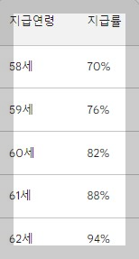 조기수령 나이와 감액률은 아래 표에서 확인 바랍니다.