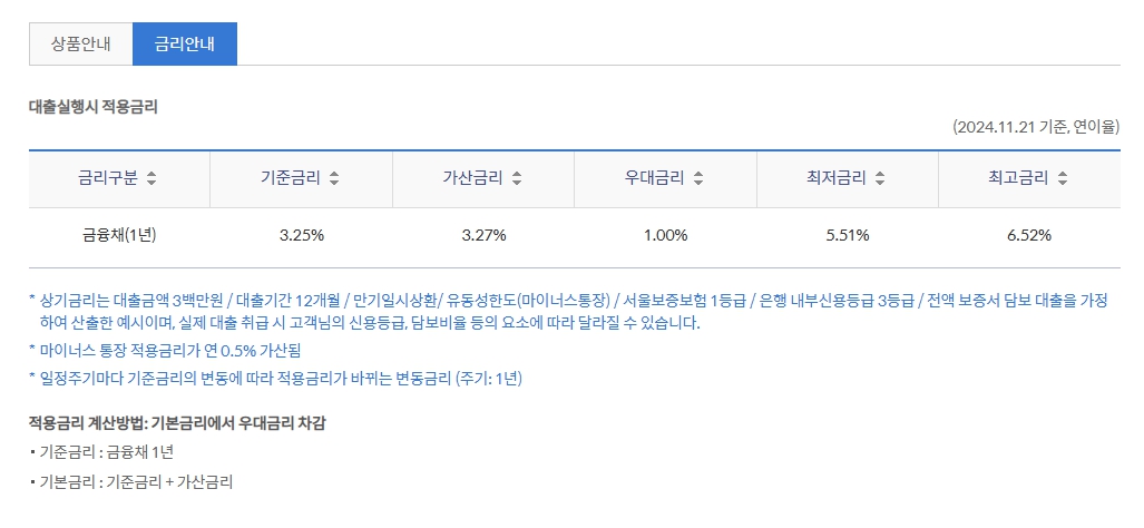 ● 기본 대출 기간: 1년