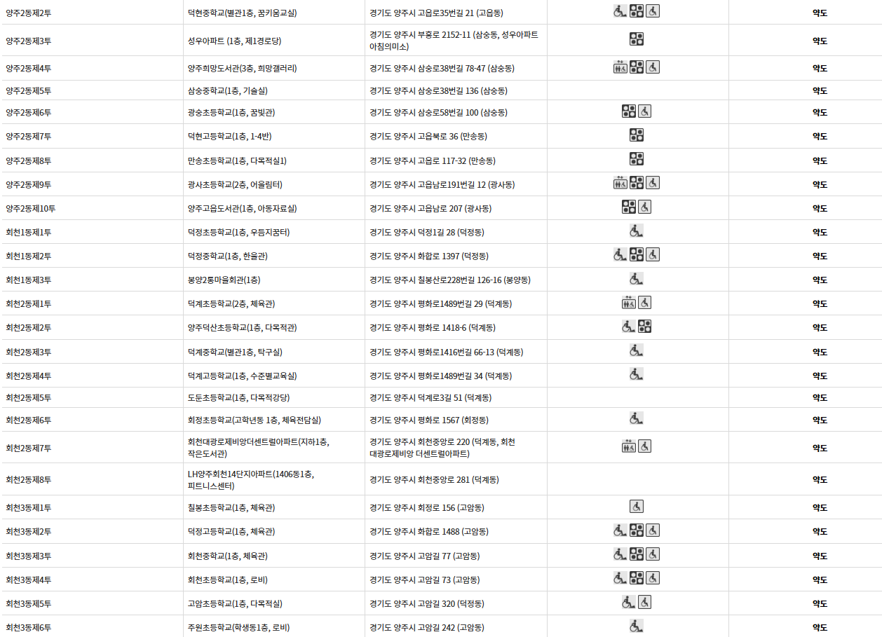 ㅁ 경기 양주시 동별 사전투표소 현황