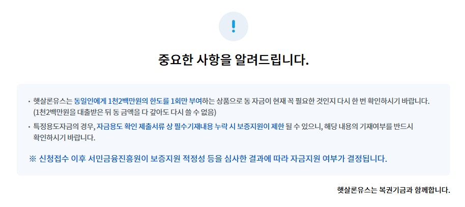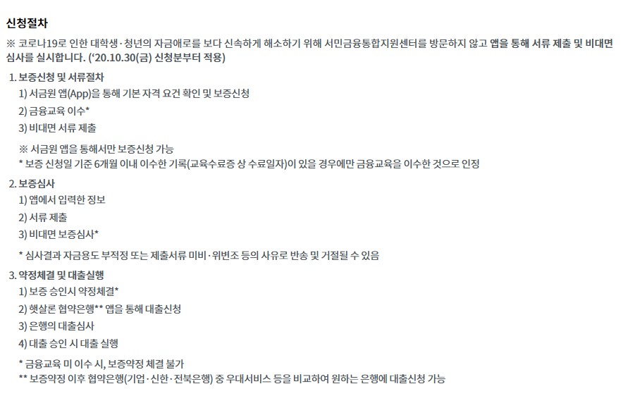 햇살론 유스 신청 시 유의사항